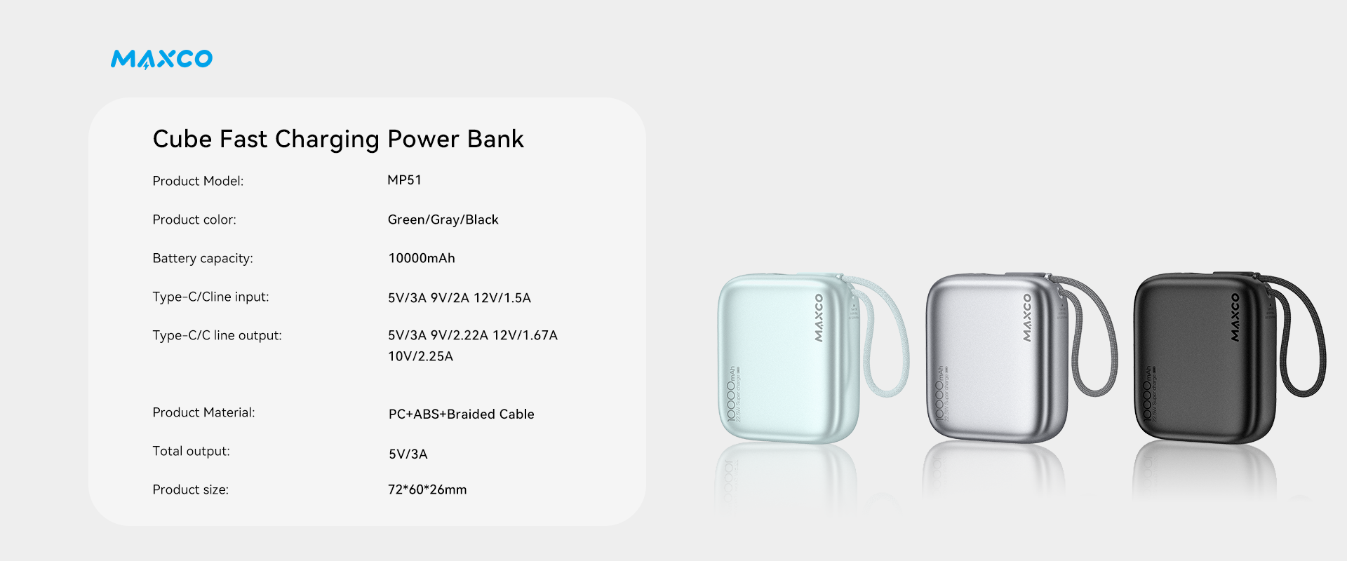 Type-C/Type-C line output: 5V3A, 9V2.22A, 12V1.67A, 10V2.25A Max.